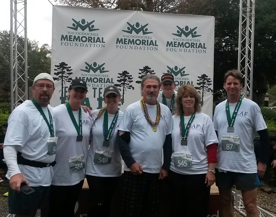 20151115_101715-1 Published November 25, 2015 at 915 × 720 in Team Fundraiser $2135 « Previous Next » Team Peace, Love, LAF: Russell Harvey, Tracy Portwood, Robin Hamil, Bryan, Brody Hamil, Suzanne, Ragin Cornelius. Missing is Julie Alston.
